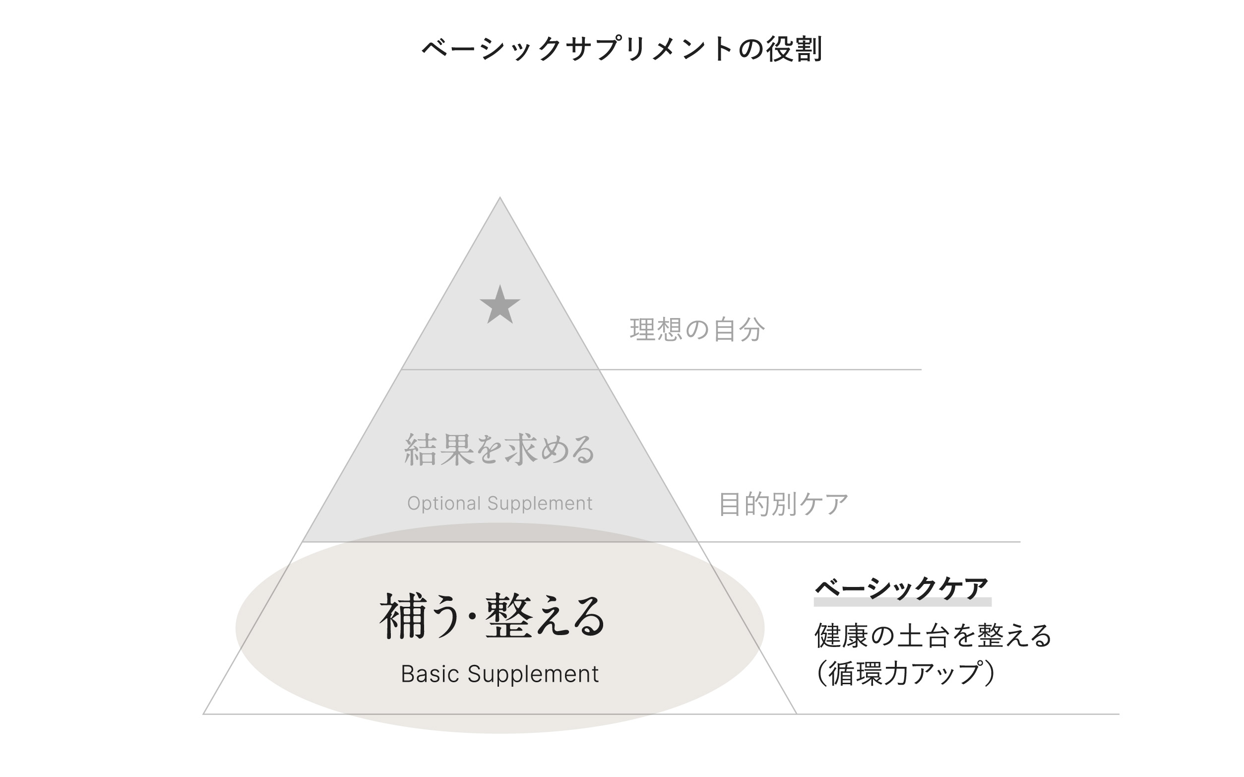 老若男女問わず、健康的な生活を送るために必要な栄養素をしっかり補給し、ベーシックケアの土台づくりをサポートします。